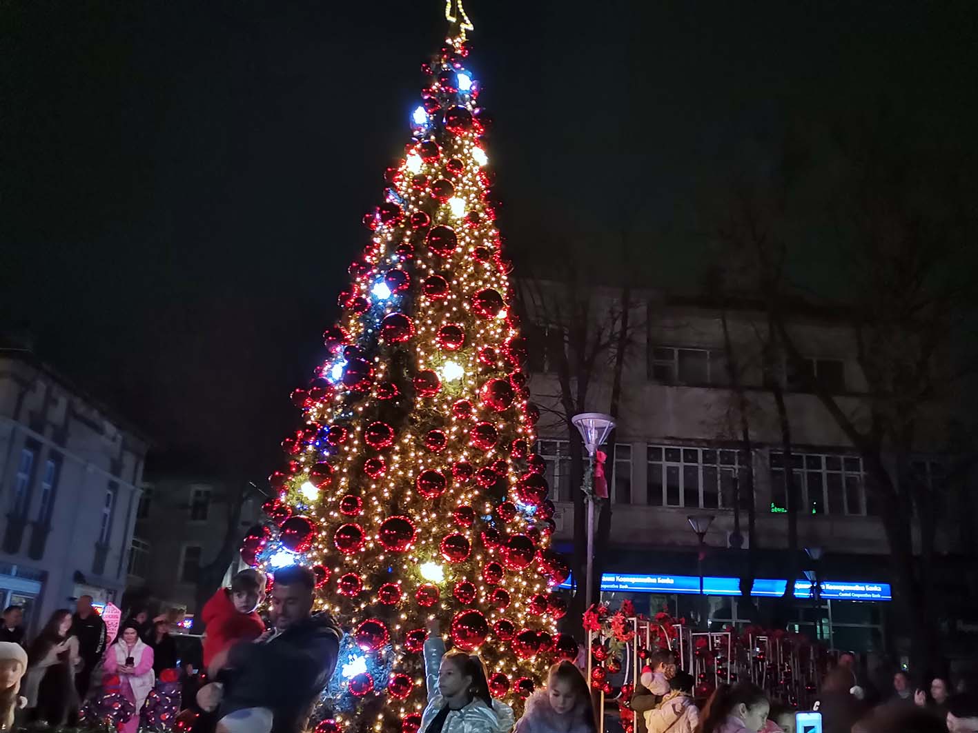 Вечерта на 4 декември елхата в центъра на Велинград заблестя в червено и златно....
