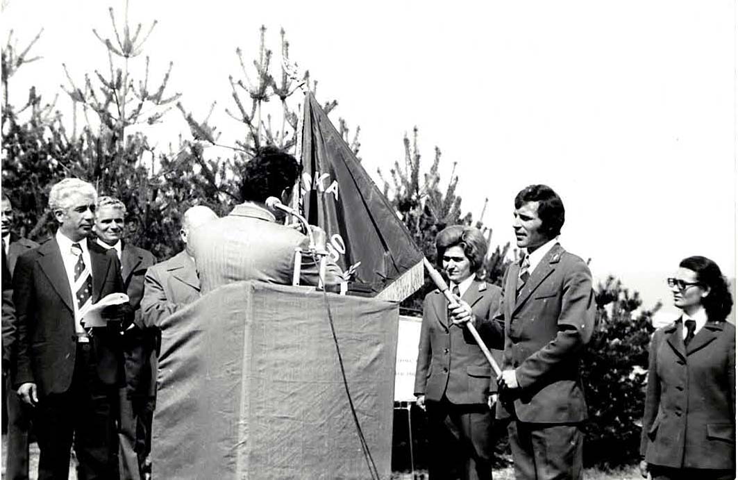 На първата снимка са официалните лица. Слово произнася Асен Халачев, директор на Горско-промишления комбинат в Пазарджик. На първия ред от ляво на дясно са заснети: Кирил Цанов - директор на Горско стопанство - Велинград, Борис Кацаров - председател на ОК на ОФ, Георги Пашов - секретар на ГК на БКП, инж. Иван Цаков - герой на социалистическия труд, инж. Георги Кънчев - председател на ОК на работещите в горите и горската промишленост, Георги Шулев - първи секретар на ГК на БКП, Петър Калоянов - секретар на ГК на БКПТ и Георги Шуманов - кмет на Велинград.