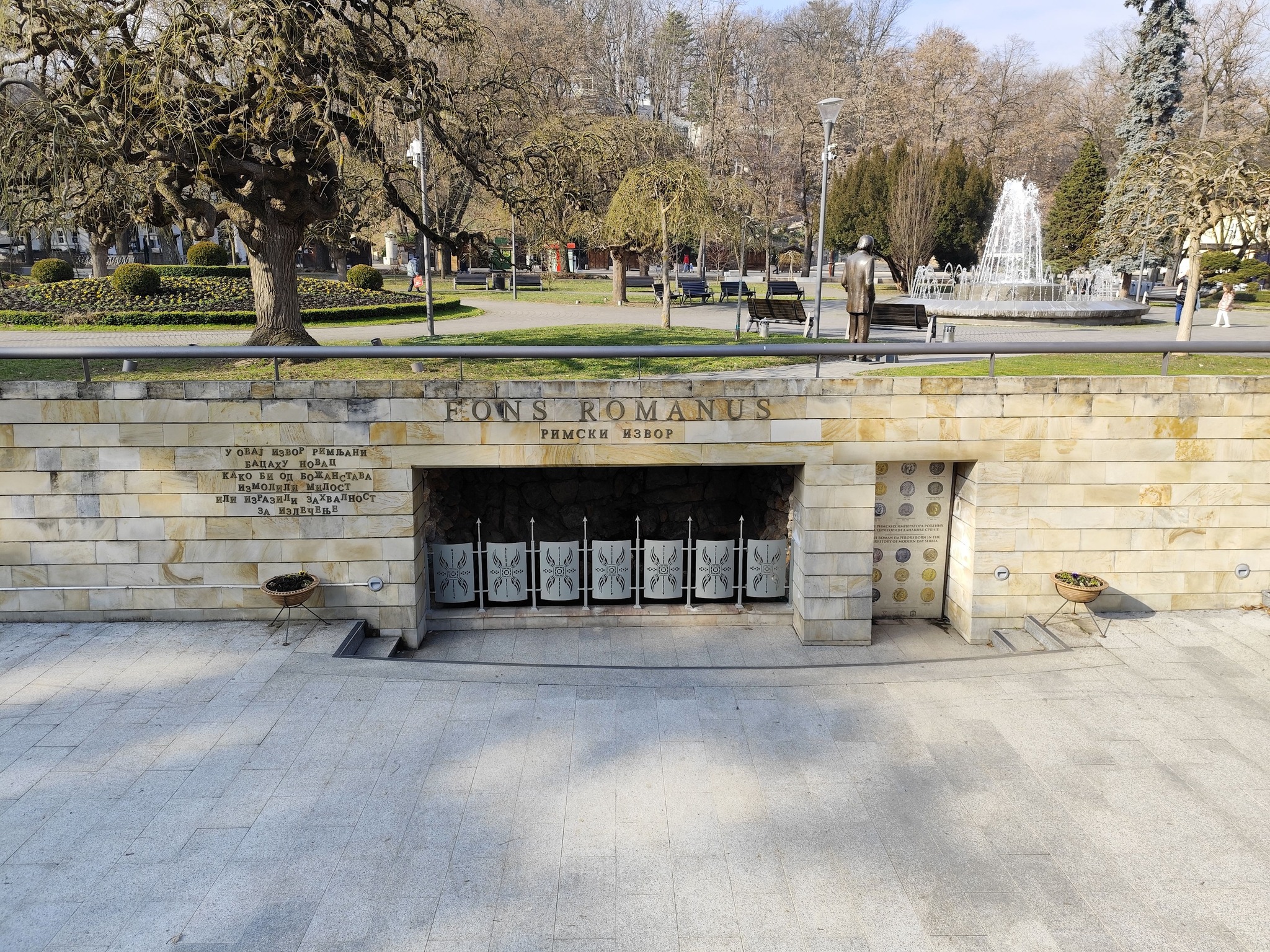 А там, в Сърбия през целия център на градчето течеше рекичка, социализирана, както е модерно да се казва в днешно време. След което стигнахме до същинската част на парка. Наистина парк с огромни размери, нещо като този в гр. Сандански, подреден, изчистен, без особени разлики с парковата растителност при нас, но пък добре аранжиран и окастрен. В парка имаше и бронзови статуи - бюстове на местни и национални видни личности, поети, учители, журналисти, актьори и т.н. Просто хората си пазят историята и се стараят да я помнят, такова впечатление остави у мен тази алея от местни герои.