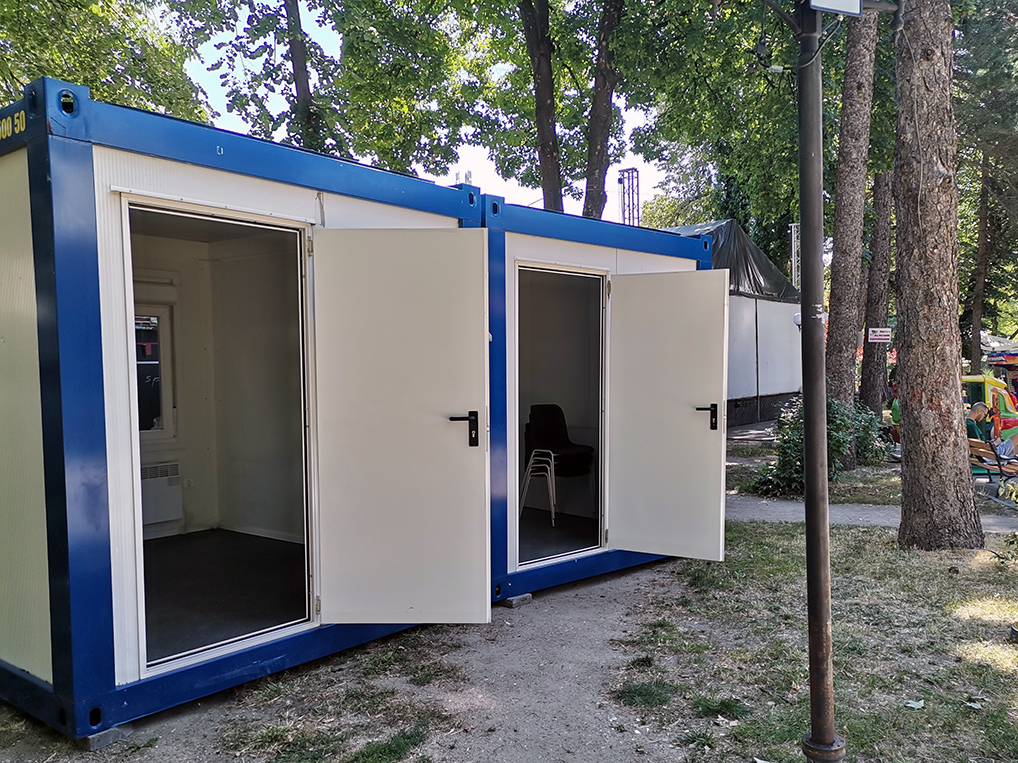 Това лято, дни преди началото на Празниците на културата, в „задния двор“ на центъра - там, където някога беше зелен парк, общината постави два контейнера. Те трябва да изпълнят ролята на съблекалня и гримьорна, но явно са доста тесни и неудобни, защото в повечето случаи не се ползват от участниците в концертите. В другия край на площада бяха поставени и две еко-тоалетни, което също е доста спорно решение от страна на общината-домакин.