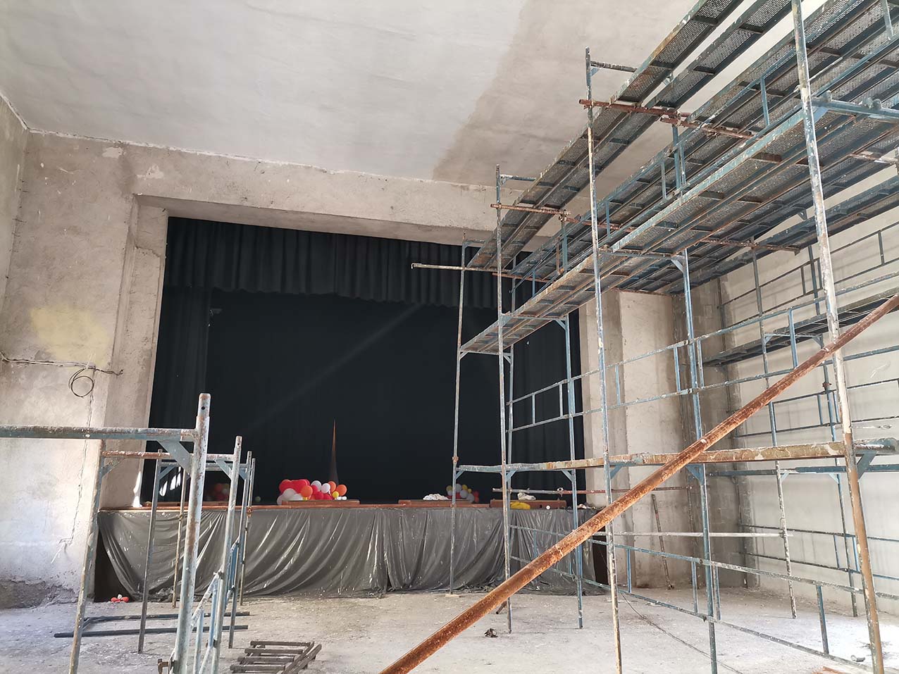 Поредна стъпка по дългия, но славен път за ремонта на Старото читалище в квартал Чепино: майстори боядисаха тавана на големия читалищен салон. Може и да звучи лесно, но всъщност задачата се оказа доста трудна. Височината на залата е много голяма и се наложи изграждането на стабилно скеле. На помощ се притече фирма от Велинград, която даде безвъзмездно скелето за определен период.