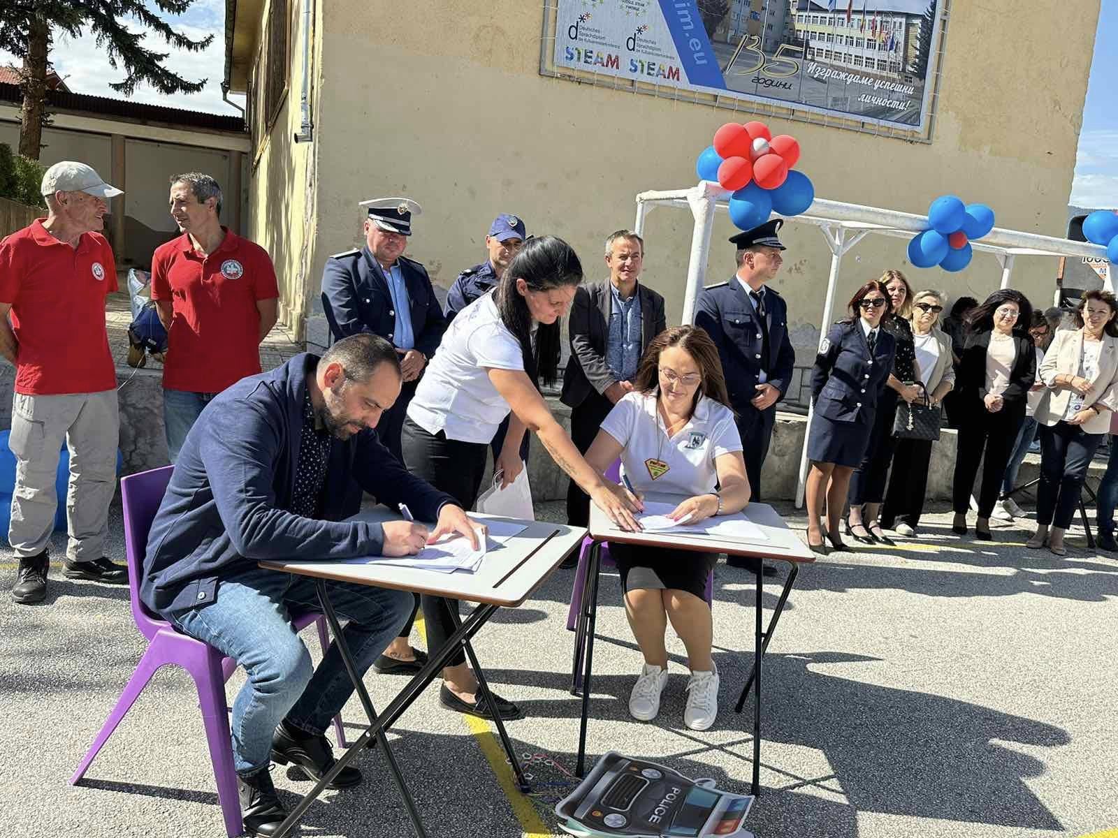 В обучението ще участват служители от структурите на МВР - Велинград: младши инспектор Здравко Пашов - ръководител на програмата, инспектор Борис Боков - пътен контрол, инспектор Георги Харисков - детска педагогическа стая и представители на БЧК. За реализирането на съвместната дейност беше подписано споразумение между директора на СУ „Св. св. Кирил и Методий“ г-жа Ани Василева и гл. инспектор Борис Бориков, началник на РУ - Велинград.